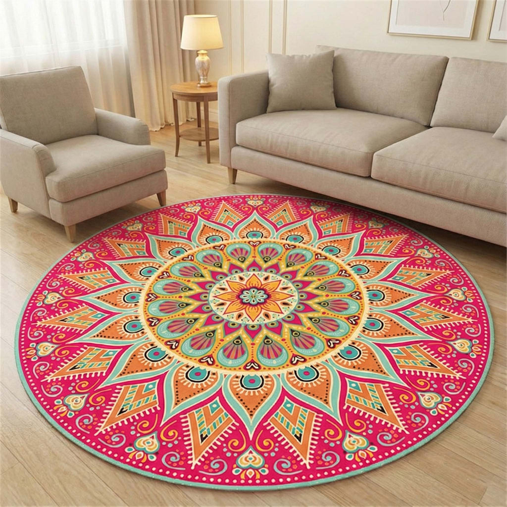 Anti Skid Rugs Non-Slip Round Heavenly Sun Rangoli Pattern Heavy Carpet